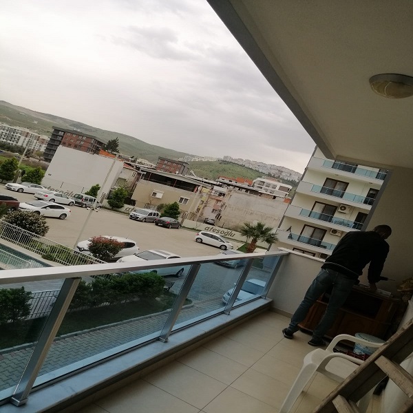 - İzmir’in Uğur Mumcu Mahallesi’nde bulunan müşterimizin katlanır cam işleminde kullanılan malzemeler;